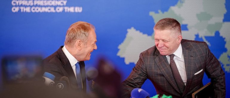 Премьер-министр Польши Дональд Туск попал в неловкую ситуацию на саммите Евросоюза при попытке пошутить об отсутствии России, когда его прервал премьер-министр Словакии Роберт Фицо. Об этом пишет издание Onet….