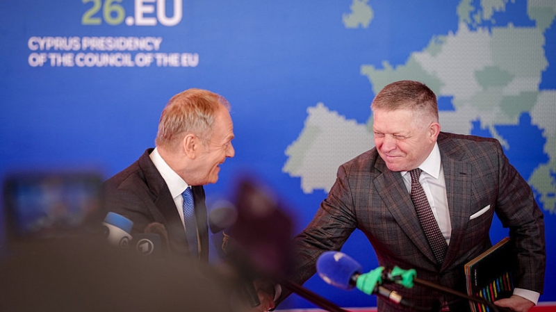 Премьер-министр Польши Дональд Туск попал в неловкую ситуацию на саммите Евросоюза при попытке пошутить об отсутствии России, когда его прервал премьер-министр Словакии Роберт Фицо.